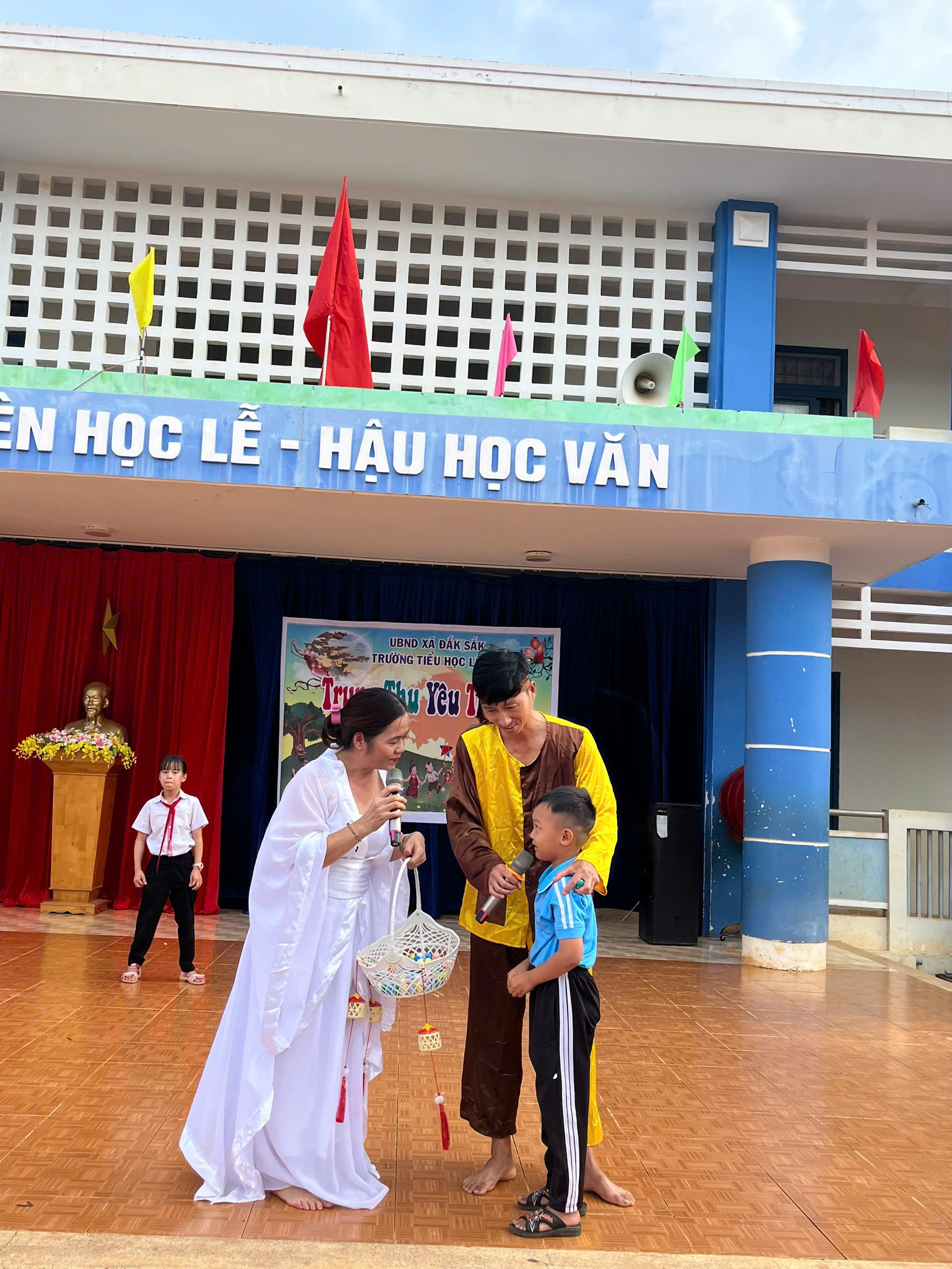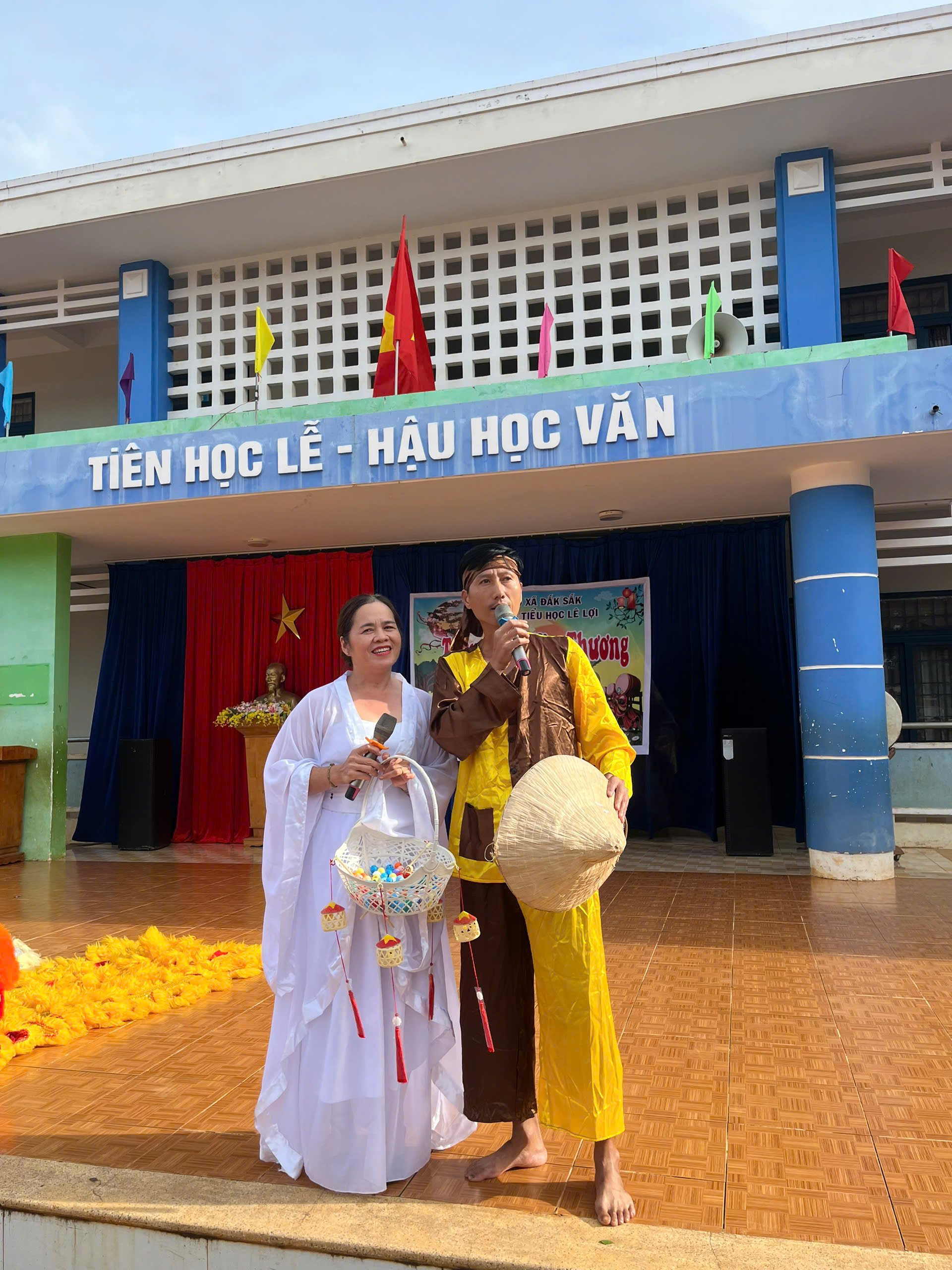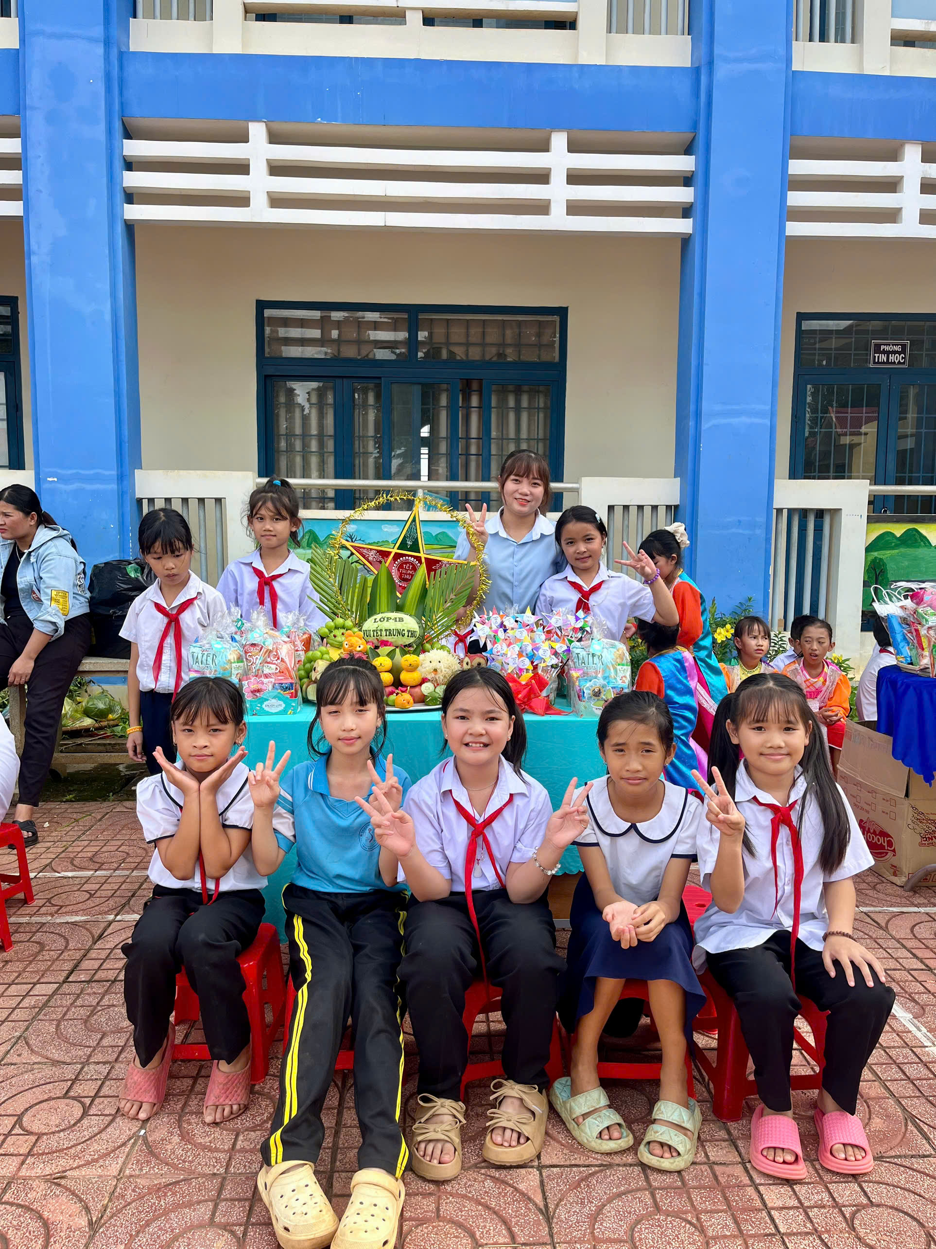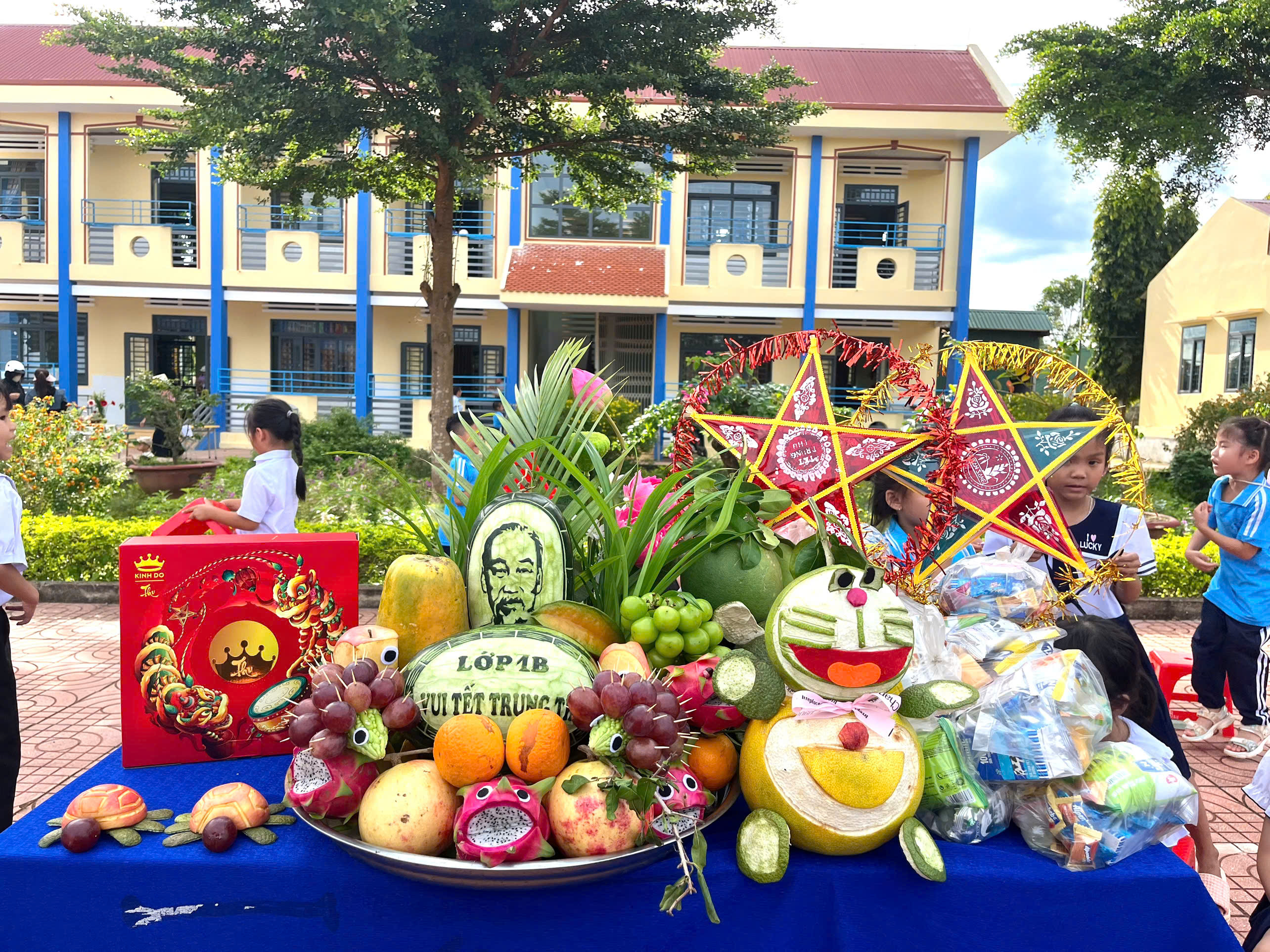 Mở đầu chương trình là màn múa lân đặc sắc, mang đến không khí sôi động, thu hút sự chú ý của tất cả học sinh. Tiếp theo là các tiết mục văn nghệ do chính các em học sinh biểu diễn, như múa “Trăng tròn tròn”, Đơn ca “Chú Cuội chơi trăng”, hay những bài hát mang đậm sắc màu Trung thu truyền thống.